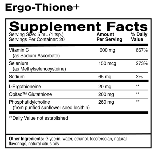 Ergothioneine, a naturally occurring sulfur-containing amino acid, serves as the hub, connecting the other antioxidants in the formula, and has an extremely unique ability to function “on-demand”, concentrating in damaged tissues. It is able to quench oxidative stress when physiologic needs arise without shutting down necessary pro-oxidant signaling.