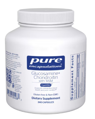 Sulfur-containing methylsulfonylmethane (MSM) is included in this glucosamine and chondroitin combination to provide an enhanced spectrum of nutrients for optimal cartilage matrix composition, connective tissue strength, and joint comfort. Glucosamine promotes the synthesis of the glycosaminoglycan chondroitin sulfate. Chondroitin sulfate is responsible for building the ground substance of cartilage, molecules known as proteoglycans. In addition, chondroitin sulfate may maintain healthy enzyme activity. An important role of sulfur from MSM is to enhance the structure and integrity of proteoglycans.